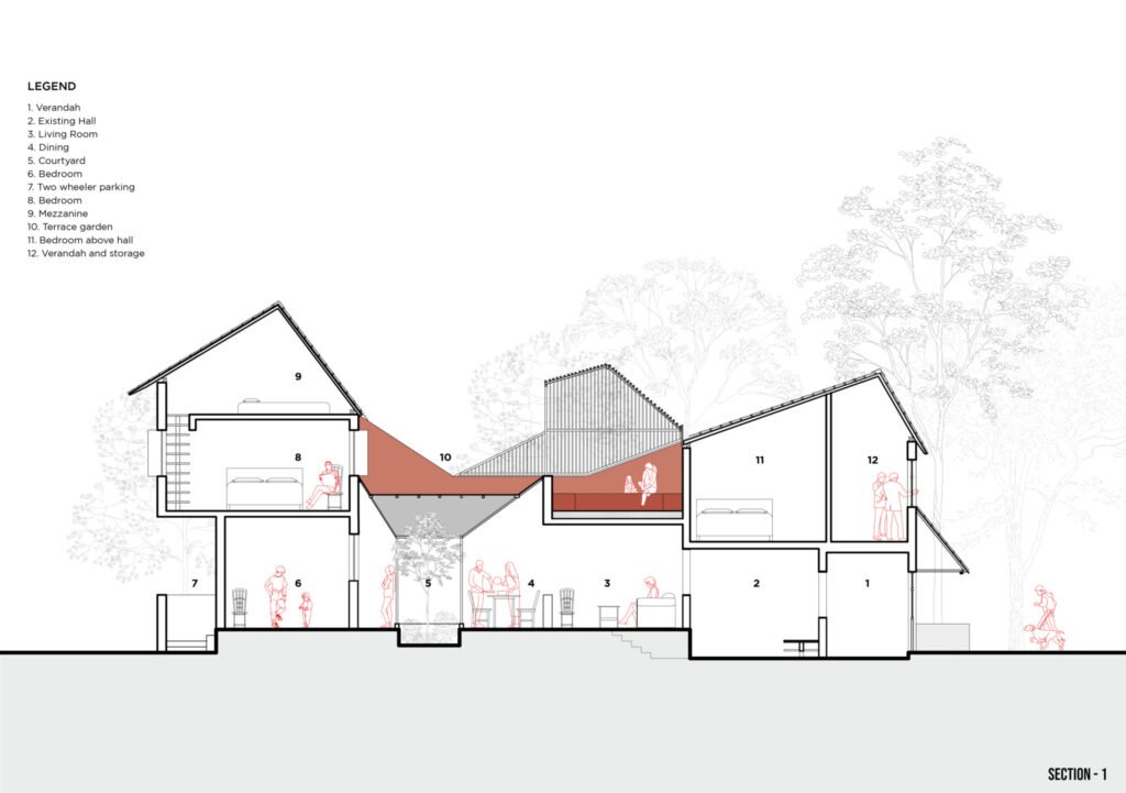 The Vision of the project was to ensure maximum availability of natural light and ventilation to the house without disrupting the privacy of its inhabitants. It also minimises dependence on artificial resources for ventilation and creates spaces that serve more than one user group and more than one activity.