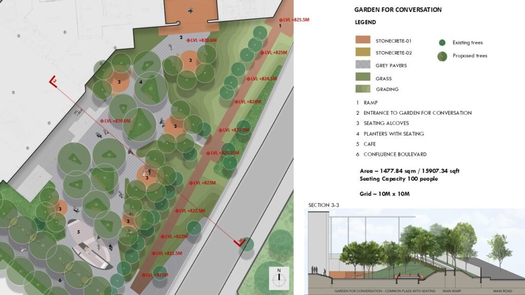 - Garden for conversation – A public plaza for discussion and dialogue.