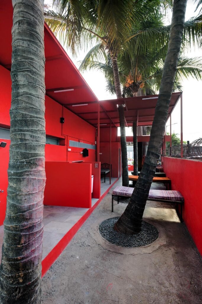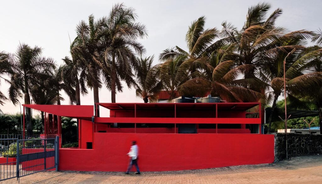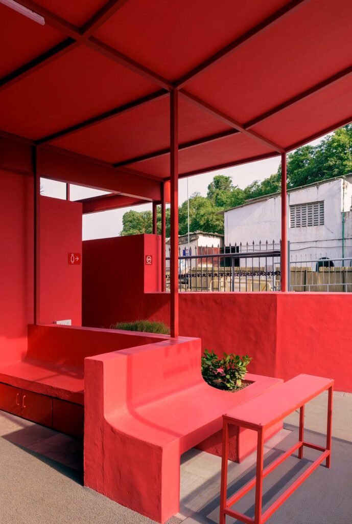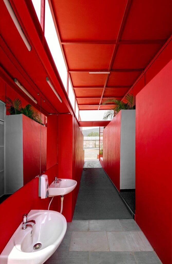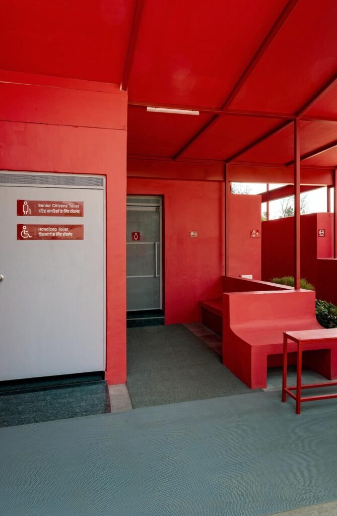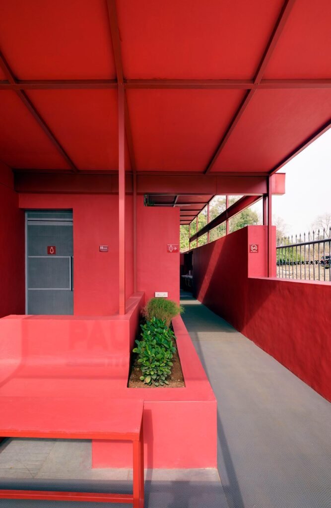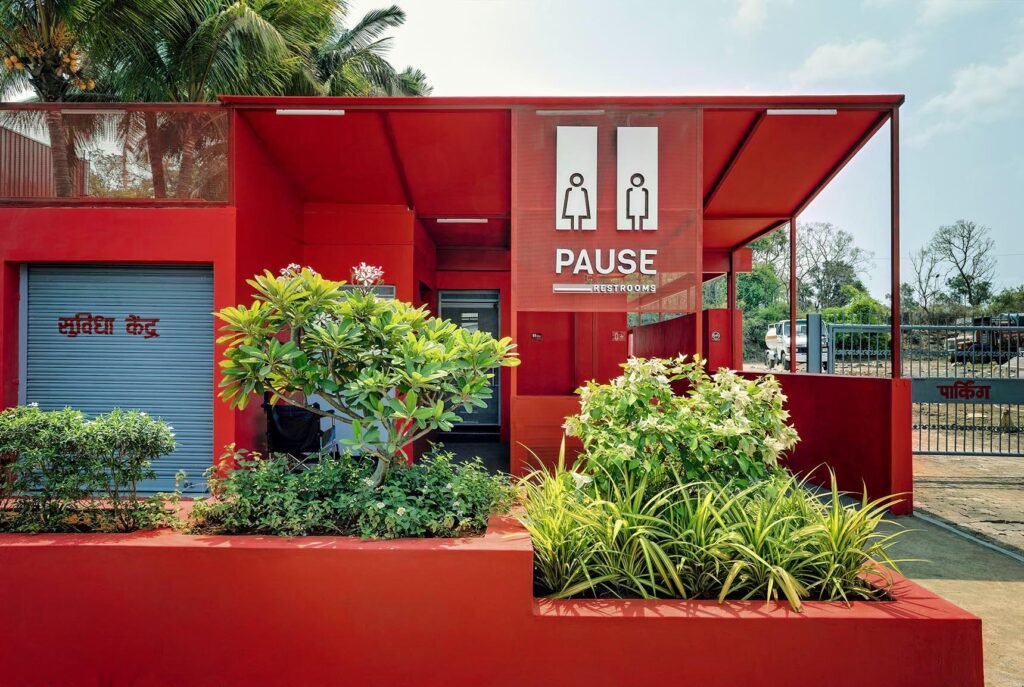 ‘Pause’ is a multifaceted restroom complex located along India’s Bombay-Goa highway, on the way to the Karnala bird sanctuary. Taking cues from other public utilities, including London’s famous telephone booths, post boxes, and buses, all colored in red, ‘pause’ is painted in the same color to allow passers-by to quickly identify its public facilities in the urban landscape