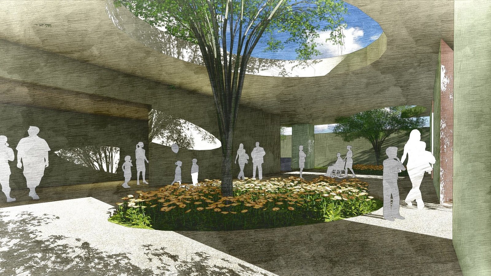 The project celebrates architecture as choreography, where movement through space becomes an experience of unfolding scenes, each court revealing not just a building, but a distinct cultural activity and atmosphere