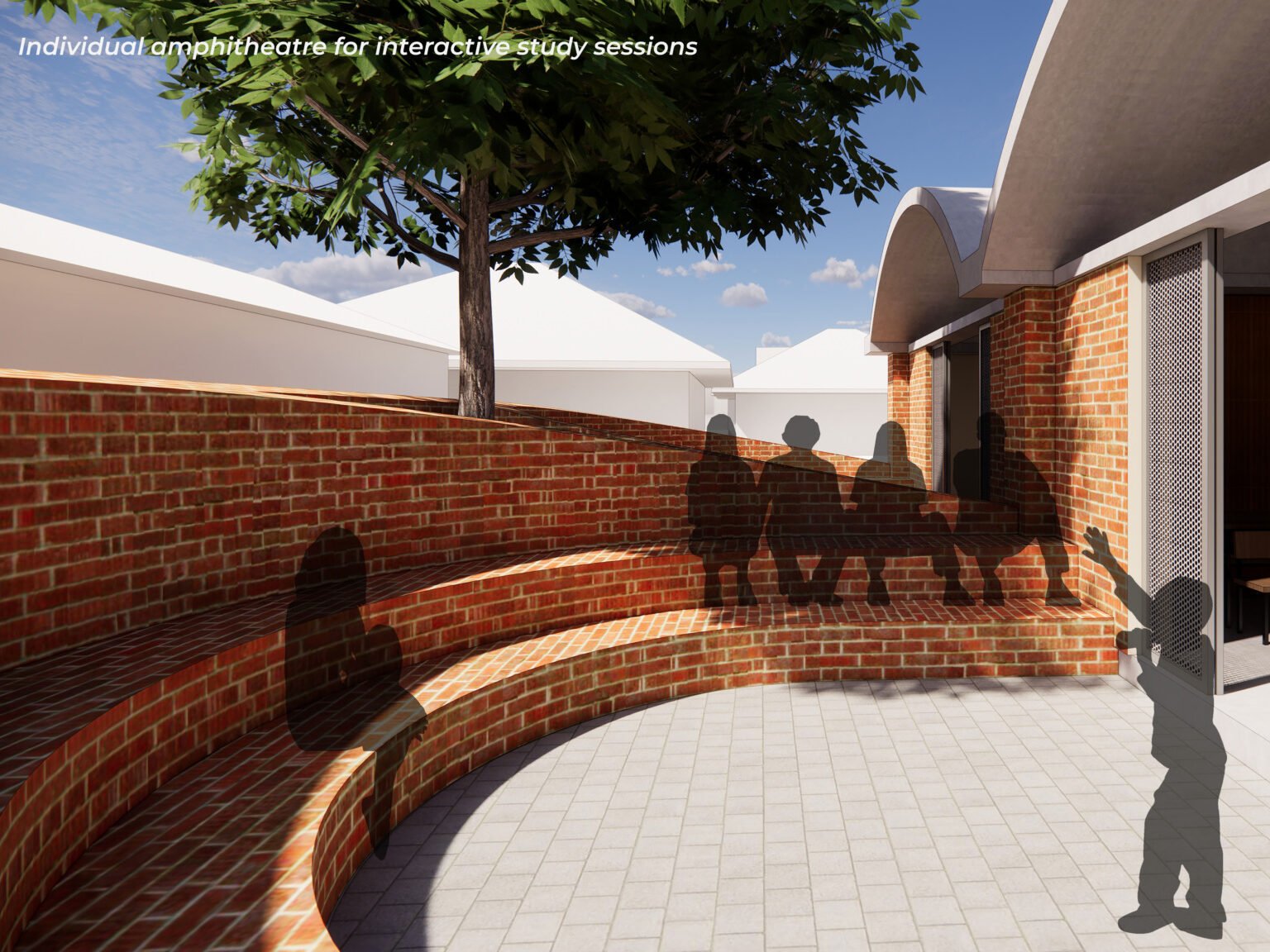 3. A mini amphitheater for interactive study sessions. This is an informal space where students can get together and interact.